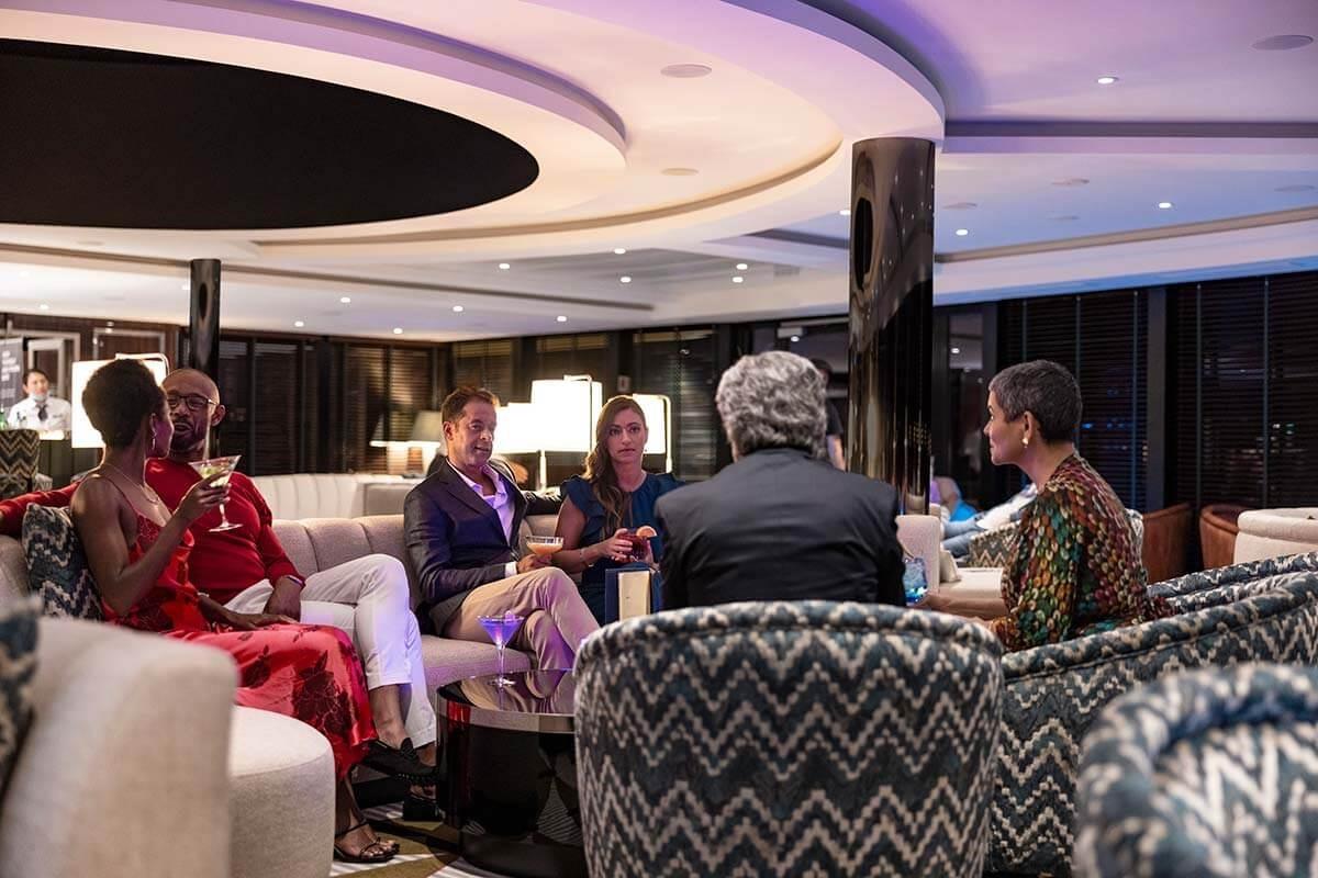Open bars and lounges, including 24-hour bar service with specialty appetizers, are always included. Get to know your fellow explorers with champagne and gourmet canapés during a meet and greet. Enjoy a leisurely evening swapping stories or looking out on the horizon from spacious decks. An ambiance of relaxed luxury invites you to savor each moment of the journey, allowing for deeper connections as you mingle with new friends.